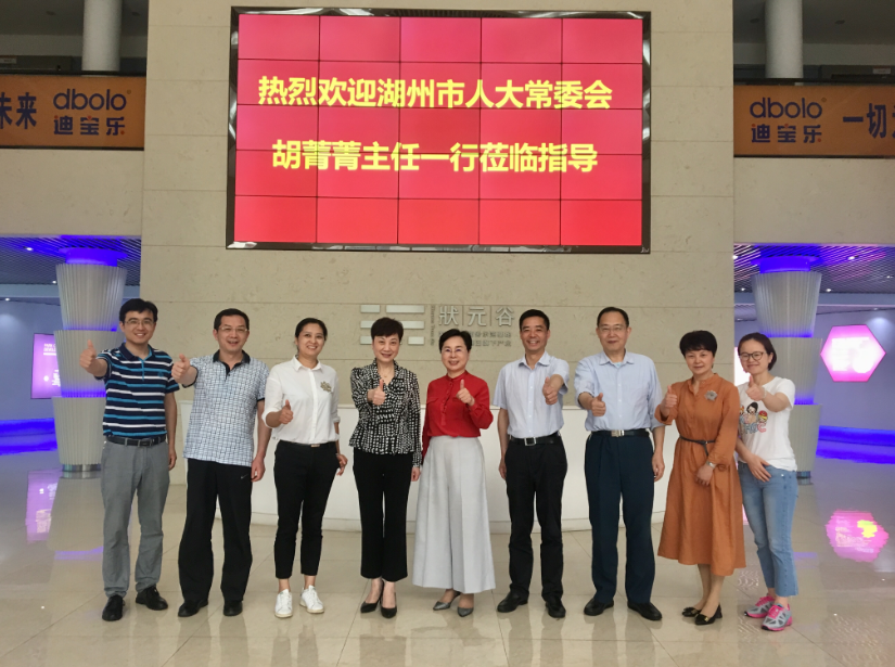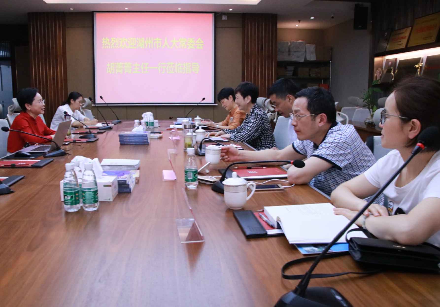 4月26日,湖州市人大常委会胡菁菁主任一行莅临华体app登录入口-华体huati(中国)总部考察指导,集团董事长、广东省湖州商会会长官金仙热情接待了胡主任一行。